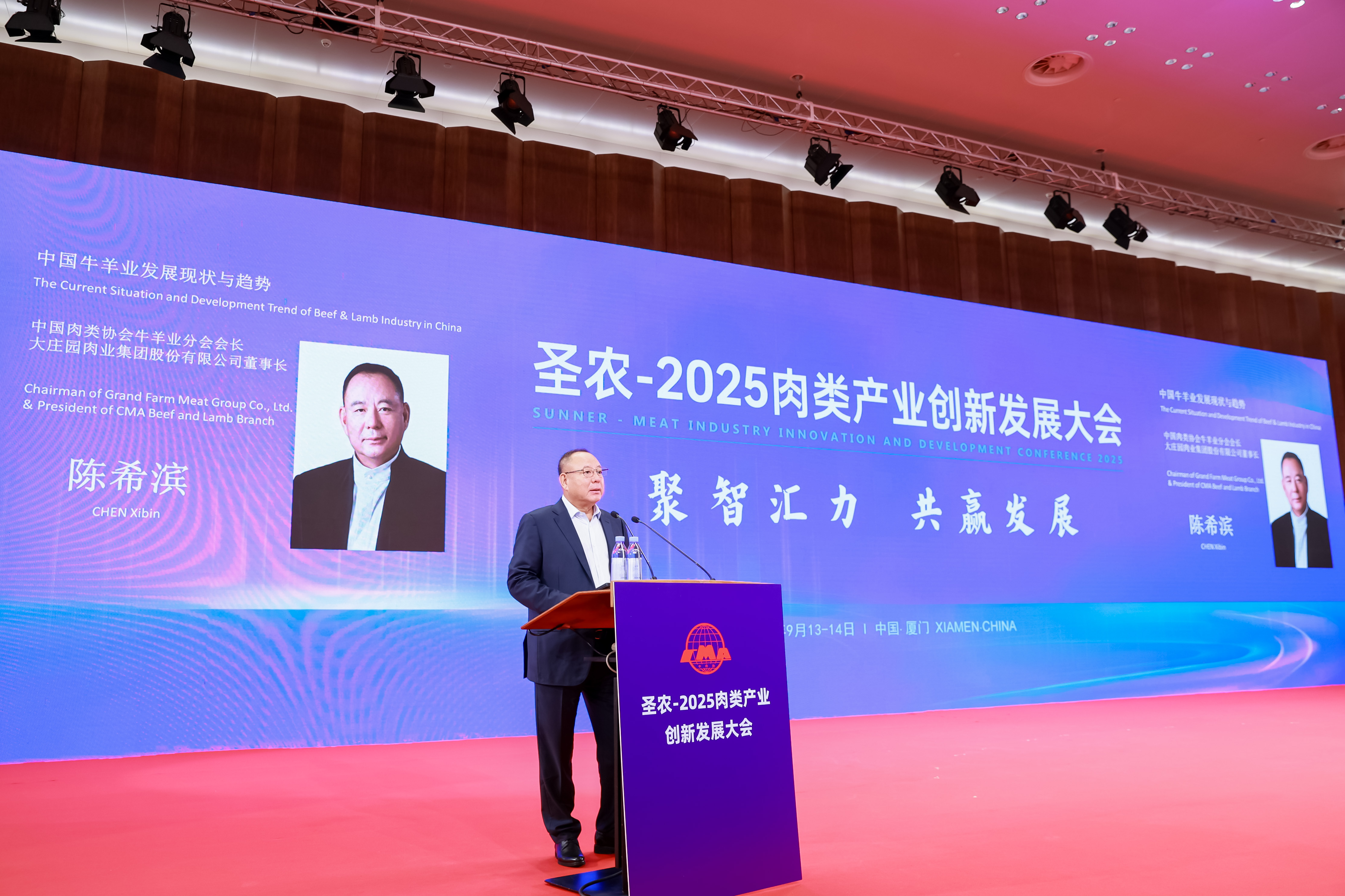 9月13日—17日,2025中國國際肉類產(chǎn)業(yè)周在福建廈門成功舉辦。大莊園集團作為連續(xù)三屆中國牛羊肉協(xié)會會長單位,秉持行業(yè)引領(lǐng)者的責任與擔當全程深度參與,與政府主管部門代表、國際機構(gòu)代表、國內(nèi)外行業(yè)專家、中國肉業(yè)M50成員企業(yè)決策者聚焦產(chǎn)業(yè)發(fā)展政策、行業(yè)動態(tài)趨勢、市場消費變化、創(chuàng)新技術(shù)成果、合作共贏模式和服務(wù)貿(mào)易發(fā)展等方面,深入探討肉類產(chǎn)業(yè)高質(zhì)量可持續(xù)發(fā)展的新機遇與新挑戰(zhàn),為推動中國肉類產(chǎn)業(yè)高質(zhì)量發(fā)展注入強勁動力。