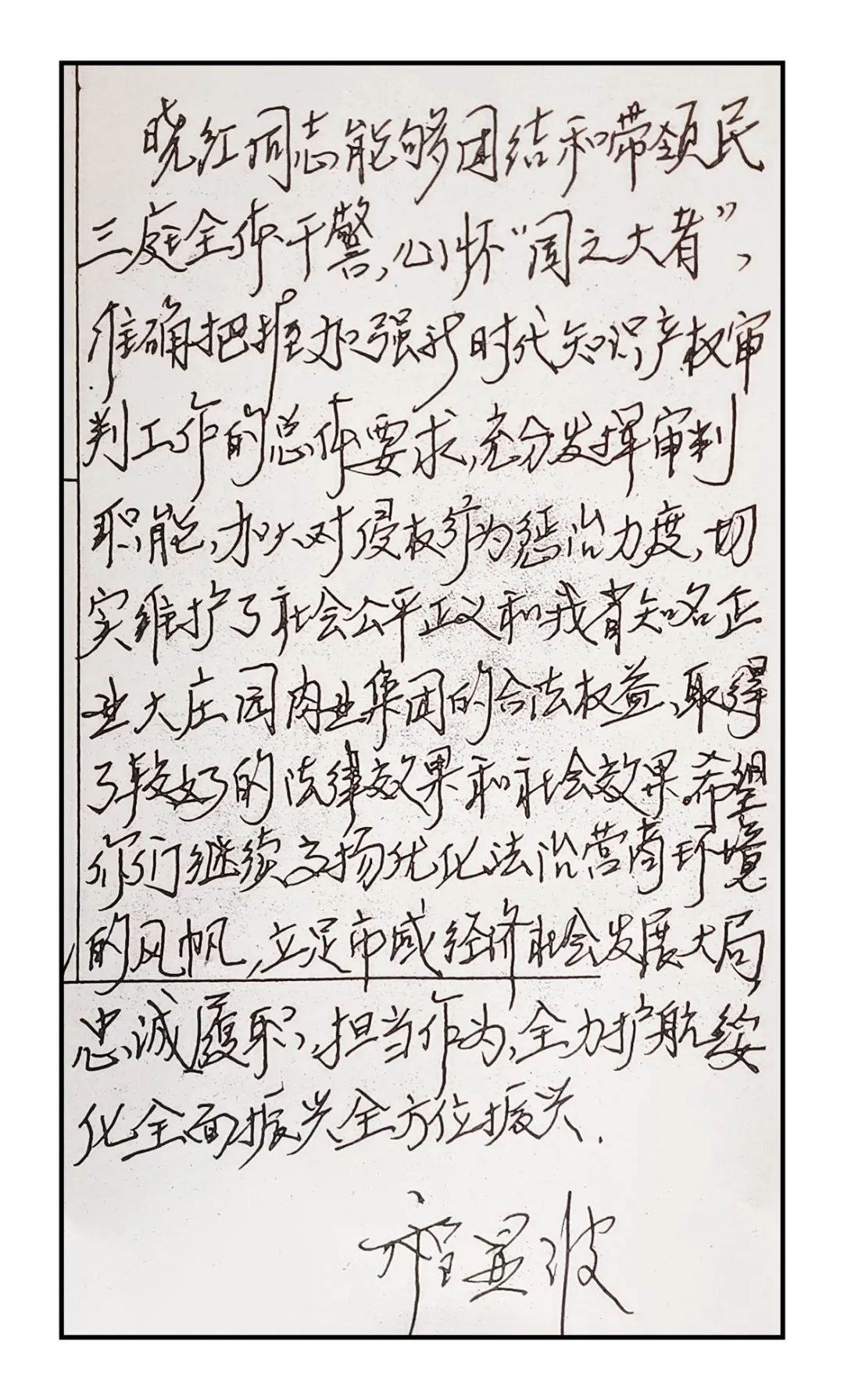 “我們懷著誠摯和激動的心情,向綏化市中級人民法院民三庭的各位法官贈送錦旗并送上《感謝信》,真誠表達我公司對綏化市中級人民法院民三庭各位法官公正廉明、認真負責的敬業(yè)精神和工作態(tài)度表示衷心的感謝和崇高的敬意!”近日,綏化市中級人民法院院長收到一封發(fā)自大莊園肉業(yè)集團股份有限公司的感謝信,信件字里行間洋溢著企業(yè)對法院的感謝之情。