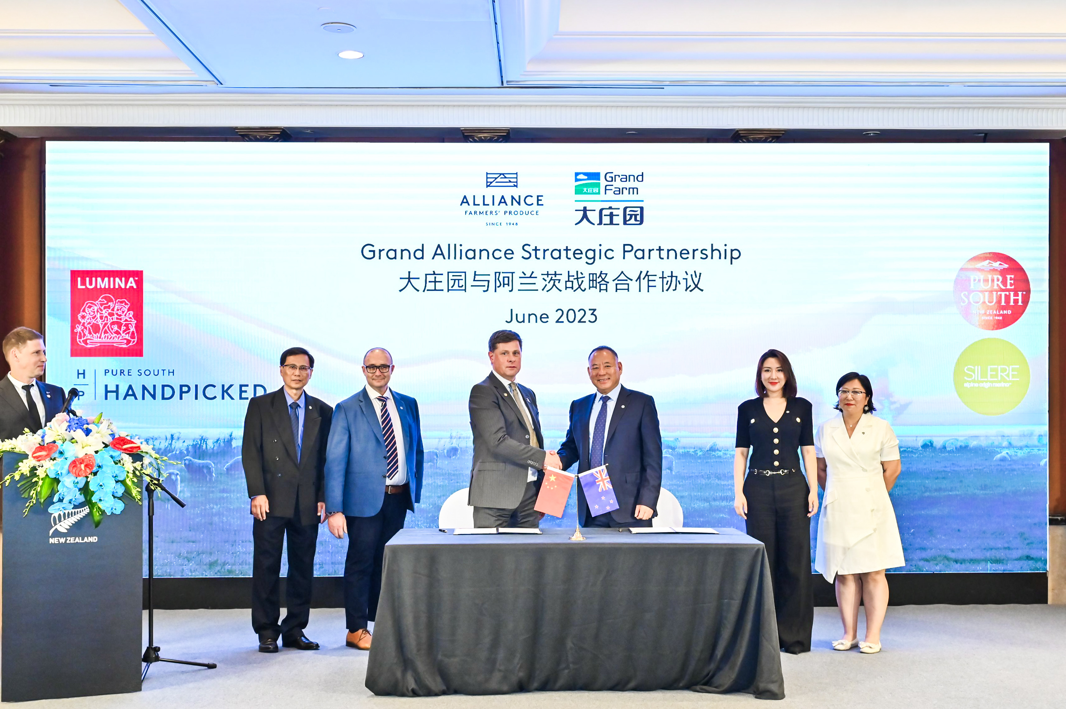 2023年6月27日,大莊園集團(tuán)與新西蘭阿蘭茨集團(tuán),在新西蘭總理克里斯·希普金斯的見證下,共同簽署《大莊園與阿蘭茨戰(zhàn)略合作協(xié)議》,實(shí)現(xiàn)戰(zhàn)略合作全面升級(jí)。